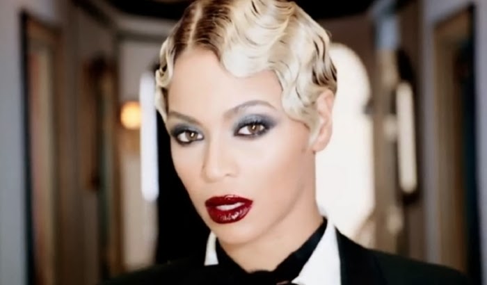 Drunk in Love o clipe dessa música (gravado todo em preto e branco) traz uma maquiagem bem marcada, que pode ser percebida mesmo na ausência de cores do vídeo. Nos lábios gloss e olhos em tom escuro e bem esfumados, sem ultrapassar o limite das pálpebras