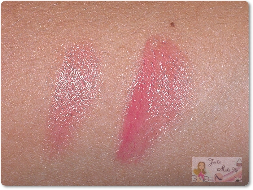 Fiz duas amostras pra vocês, primeiro aplicando uma camada fina do balm, que fica bem transparente e nos lábios dá um resultado de boca rosada, depois apliquei três camadas e olha só como fica bem mais rosadinho, parecendo um gloss!