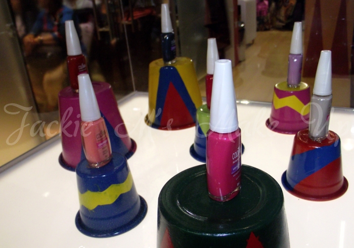 O stand temático, imitava o picadeiro de circo, tinha palhaços, e como atração contava com a distribuição de algodão doce, oferecia palestras para manicures e, claro a esmaltação!