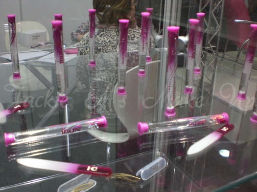 A Iron trouxe para a Beauty Fair 5 lançamentos: lixa de vidro, lixa de 3 fases, pinça de sobrancelha decorada(pink), pinça de sobrancelha estilizada com strass(dourada) e necessaire.