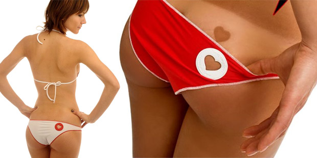 No embalo do verão no Hemisfério Norte, a marca Skin Italy lançou modelos de biquíni com um coração vazado na calcinha para deixar, digamos, uma marquinha fofa no bumbum.