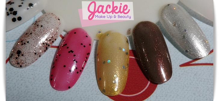 e inspirados em cristais e paetês (Rosa escuro, marrom escuro, rosa claro, prata, dourado, azul escuro, vermelho e verde). Recebi um presskit da marca com cinco dos esmaltinhos.