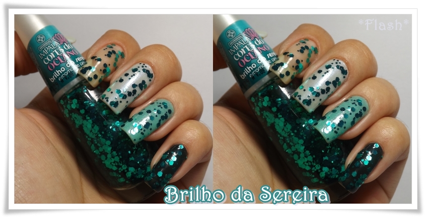 Usei ele sozinho, e como fundo o concha, Drops (Beauty Color) e o Esconde-Esconde (Impala Fun) ele tem glitter hexagonais grandes e bem pequenininhos