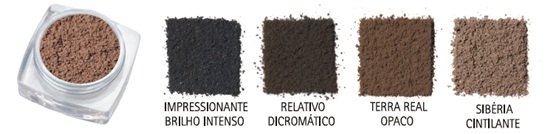 Sombra em Pó: Com proteínas da Seda e Colágeno. Ótima aderência. Toque suave e sedoso.