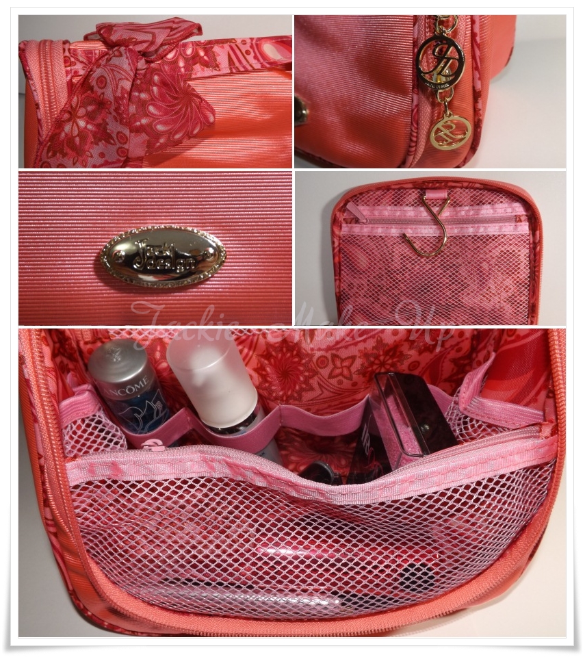 Os detalhes da necessaire são lindinhos e ela tem um ‘ganchinho’ e você pode pendurá-la na porta de um armário ou próximo a um espelho enquanto se maquia por exemplo