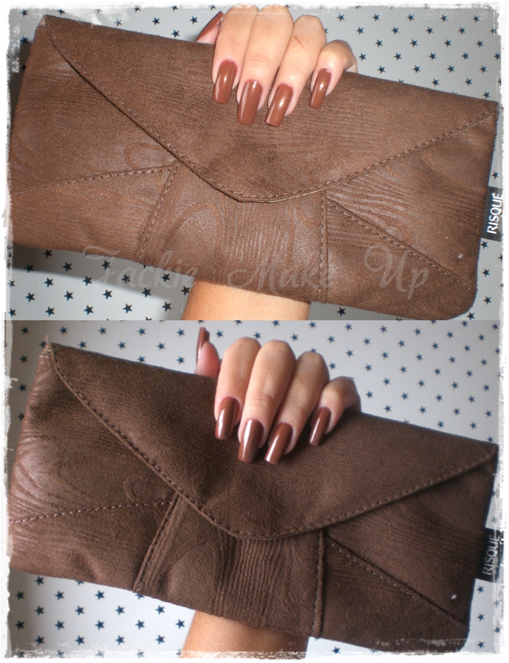 Como de costume, fotografei com e sem flash. A coleção veio em uma clutch marrom linda que eu amei d+ 😛 a cor do esmalte sempre fica mais real na foto sem flash