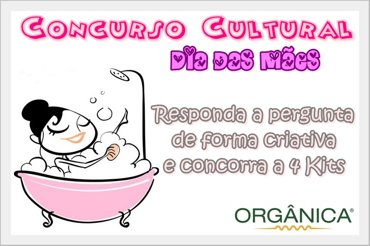 A Orgânica quer deixar o banho da sua mãe mais prazeroso e perfumado e irá sortear 4 kits de produtos. Para participar é simples responda a pergunta de forma criativa, sua resposta deve contar as palavras “beleza”,”banho” e “Mãe” preencha o formulário e cruze os dedos!