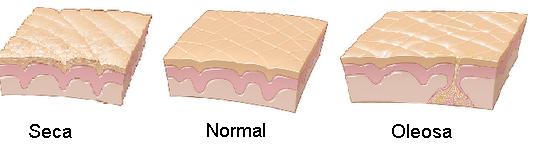 Pele oleosa: As glândulas sebáceas estão muito ativas. A pele tem um brilho untuoso. A textura é áspera devido aos poros ampliados.