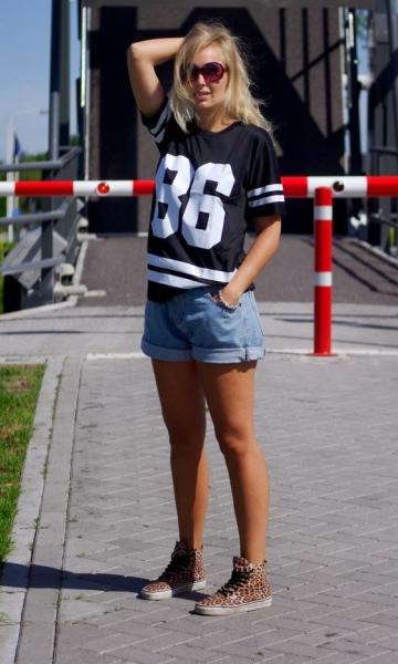 Rirri é a rainha, quando diz respeito a look streetwear. Aqui, ela está misturando todos os ítens possíveis: camisetão com essa cava profunda é mais que tendência, já é fato consumado da moda.