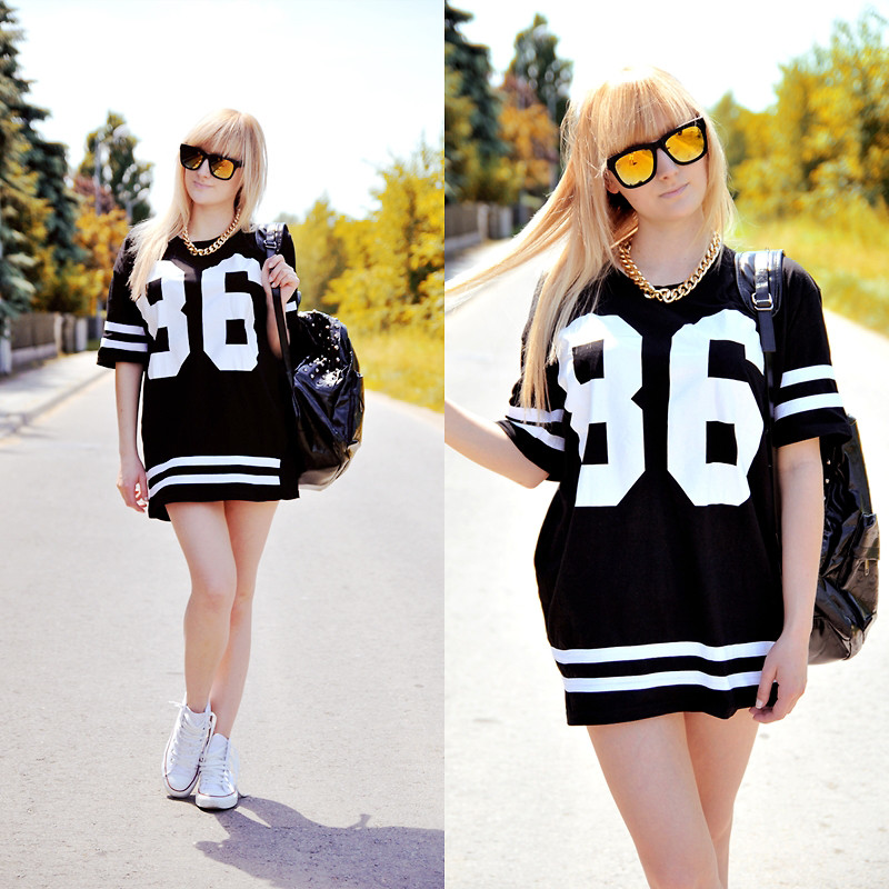 Se você for desencanada e a camiseta for beeeem grandona, dá pra usar como vestido + o seu velho amigo all star, o pai do streetwear!