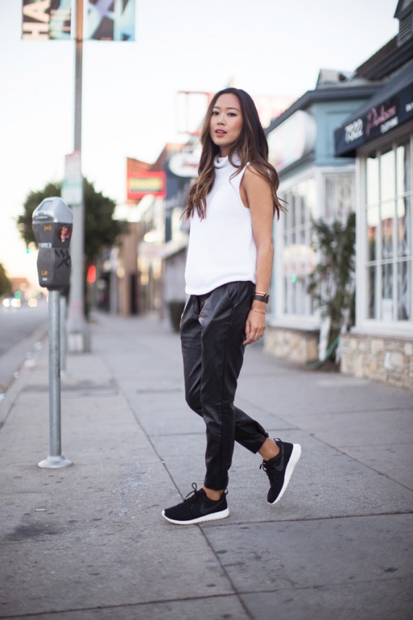 Paras as meninas mais discretas e amantes do P&B, quem disse que pra ser streetwear NECESSARIAMENTE precisa ser todo colorido? Olha essa pegada da calça bag + o tênis esportivo. Ficou streetstyle na medida certa!
