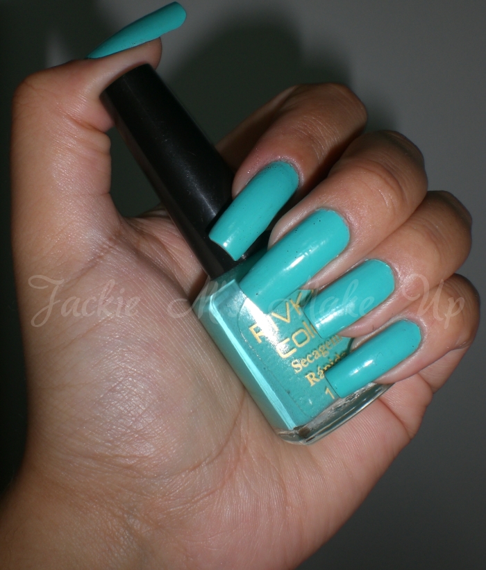 O esmalte desta semana o Lara da Rivka, um esmalte cremoso quanto a cor era tudo que eu estava esperando dela. Um verdinho-água muitooo vivo, tem um “Q” de azul