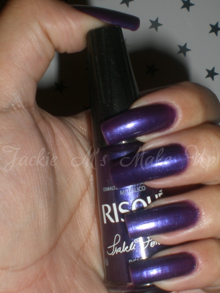 O esmalte dessa semana é o Psico da coleção Sweet Rock’n Roll da Risqué, ele tem um brilho metálico lindooo mas achei ele muito + muito ralinho 🙁