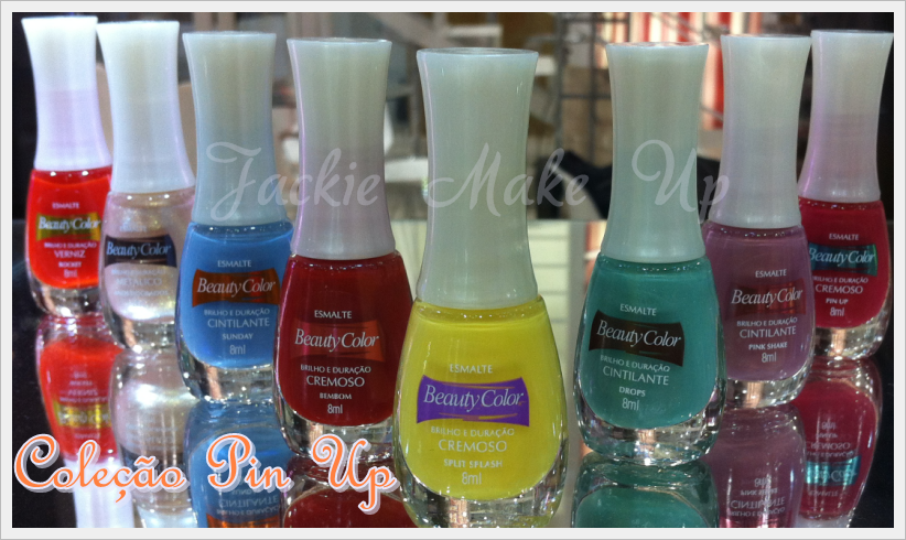 A coleção tem 8 cores Split Splash (amarelo cremoso), Rocket (coral verniz), Pink Shake (rosa cintilante), Pin Up (pink cremoso) Drops (verde cintilante), Sunday(azul cintilante), Anos dourados (dourado metálico) e BemBom (vermelho cremoso)