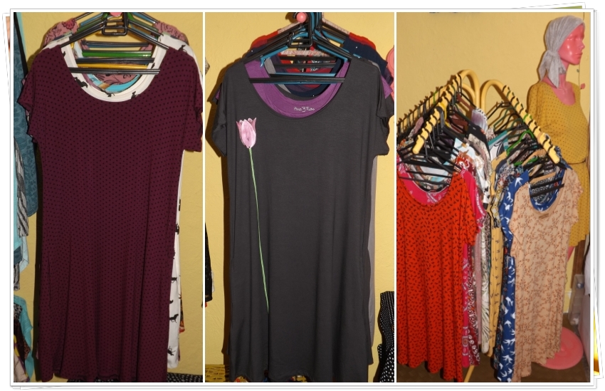 Os tecidos são escolhidos de modo que só permitem produzir dez peças. “Como o preço é acessível, vem muita gente comprar, mas não fica todo mundo igual”, me explicou Anelie uma das idealizadoras da marca.