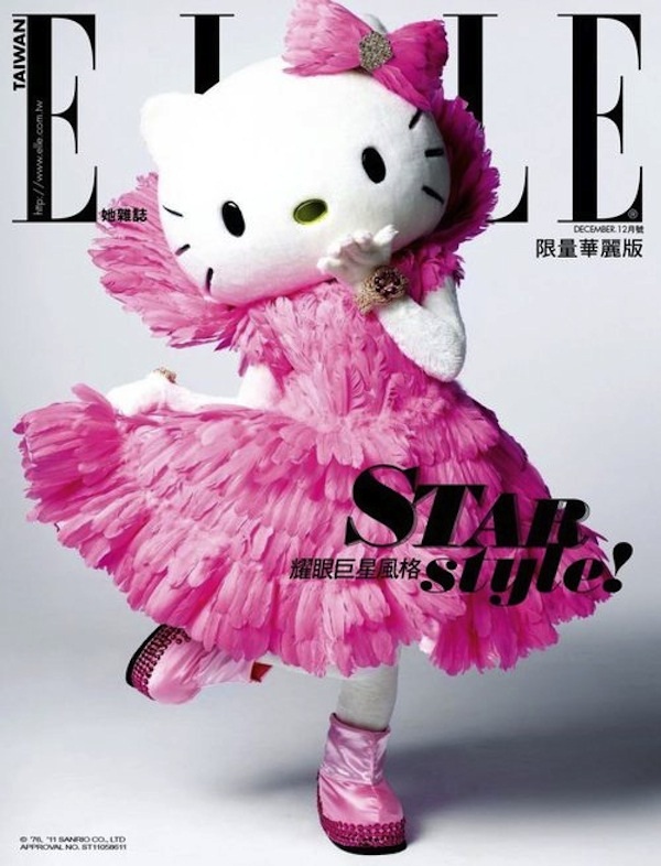 Para a comemoração dos 20 anos da Elle Taiwan, a revista publicou uma capa comemorativa estampada com um dos maiores ícones da cultura pop oriental: a Hello Kitty. A gatinha fashionista que nunca sai da moda nem dos corações das eternas crianças como eu