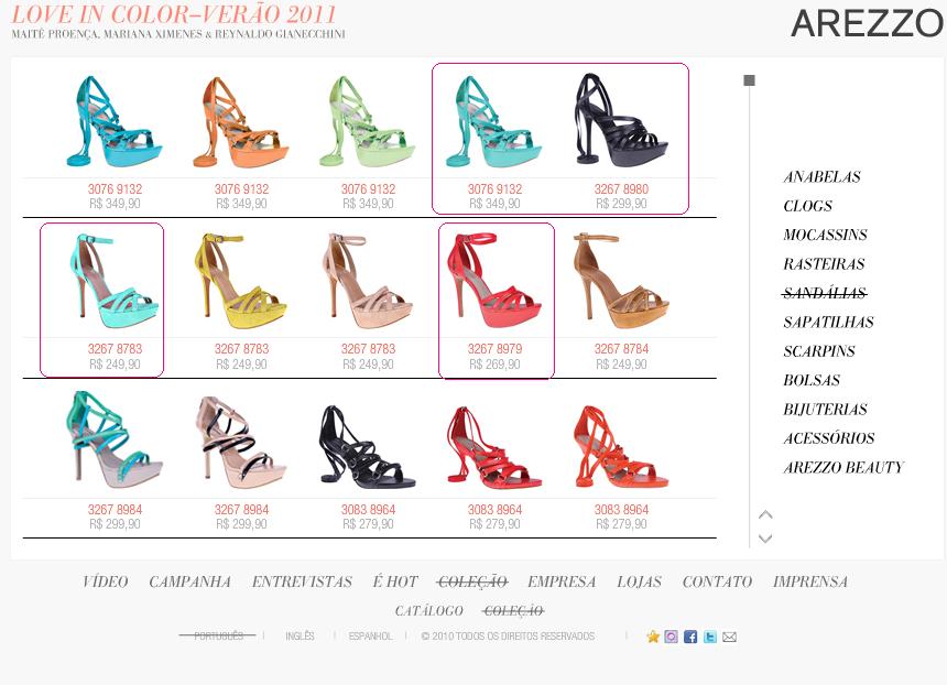 A Arezzo sempre inova em suas produções para suas novas coleções, ela está também sempre linkada com as novelas das 8 da Rede Globo e com outros artístas e músicos do momento.