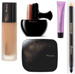 Batom Intenso FPS 15 e Hidratante Labial cremoso e transparente com filtro solar (R$ 32,50 cada); Gloss FPS 15 com brilho intenso e Lápis Retrátil para lábios à prova d´água (R$ 29,80 cada); Pré-Maquiagem (primer para reduzir o brilho e minimizar aparência de poros, rugas e linhas de expressão, R$ 52); Base Líquida FPS 15 em 8 tonalidades (R$ 63,50); Base em Pó FPS 15 com ceramidas de maracujá FPS 15 e filtro UVA, em 2 cores (R$ 72); Corretivo Iluminador com tecnologia antissinais, em 4 cores (R$ 38); Pó compacto ultrafino (R$ 63,50); Pó Solto nas cores bronze e rosa (R$ 65); Blush em Creme e Batom Mate (produto 2 em 1 rico em vitamina C, com secagem rápida e toque seco, nas tonalidades Rosa, Coral e bronze R$ 49,50); Blush Compacto (R$ 59,50); Máscara Alongadora ou Máscara Volume, preta e marrom (R$ 49,90 cada); Sombra Compacta mate ou cintilante (R$ 45); Quarteto de Sombras (R$ 72); Sombra Mousse (R$ 29); Lápis Retrátil para olhos à prova d’água, com apontador (R$ 32,50) e pinceis de maquiagem.