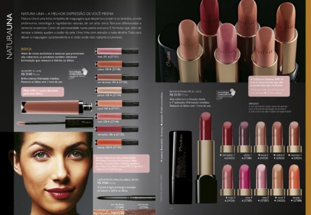 A Natura está lançando uma nova linha de maquiagem, a Natura Una. Esta linha substituirá a linha Diversa. A nova linha traz texturas inovadoras, tecnologia antissinais e com ativos vegetais renováveis da biodiversidade brasileira em embalagens sofisticadas. Tem primer, batom com acabamento matte (efeito = ao da linha Duda Molinos) e pó translúcido. As cores foram escolhidas pelo Marcos Costa, maquiador da Natura.