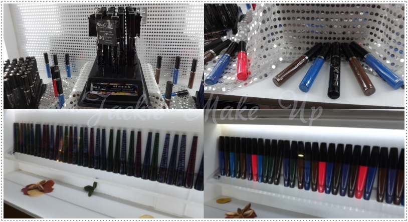 Máscaras para cílios e delineadores coloridos, a novidade é a máscara marrom (que está voltando) e a máscara 3X1 que promete alongar, dar volume e é a prova d’água