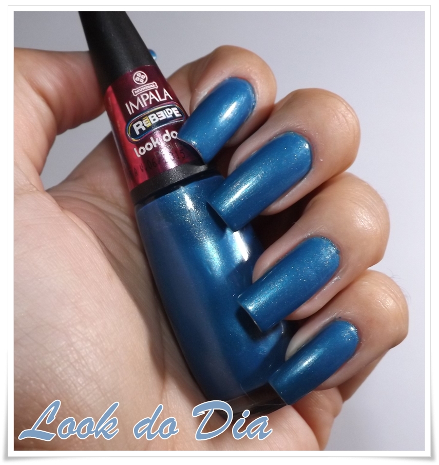 O esmaltinho dessa semana é o Look do Dia um azulzinho lindinho que faz parte da coleção Rebelde 2 da Impala. Ele é um azul perolado com micro brilhos prateados, com ótima cobertura com apenas 1 camada
