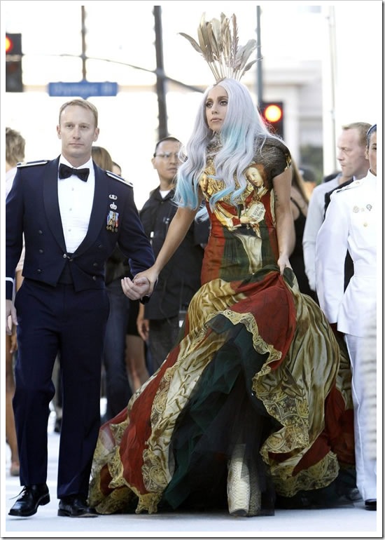 Depois da capa baphônica da Vogue em que Gaga vestia pedaços de carne OOps I did it Again! Agora ela se vestiu por inteiro nem os sapatos escaparam!