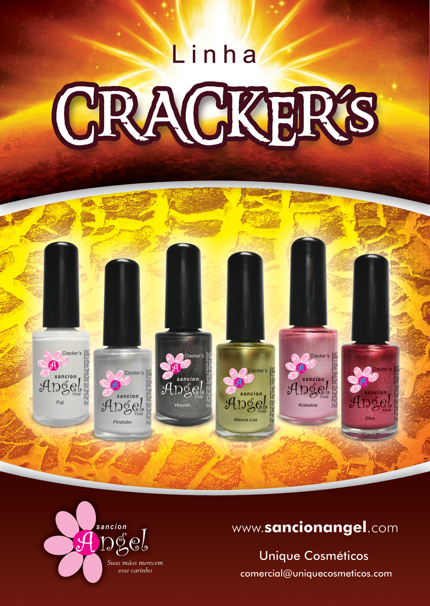 Mais uma marca nacional lança seus esmaltes craquelados, a Sancion Angel anunciou a sua nova coleção Cracker’s que é composta por 6 esmaltes metalizados craquelados.