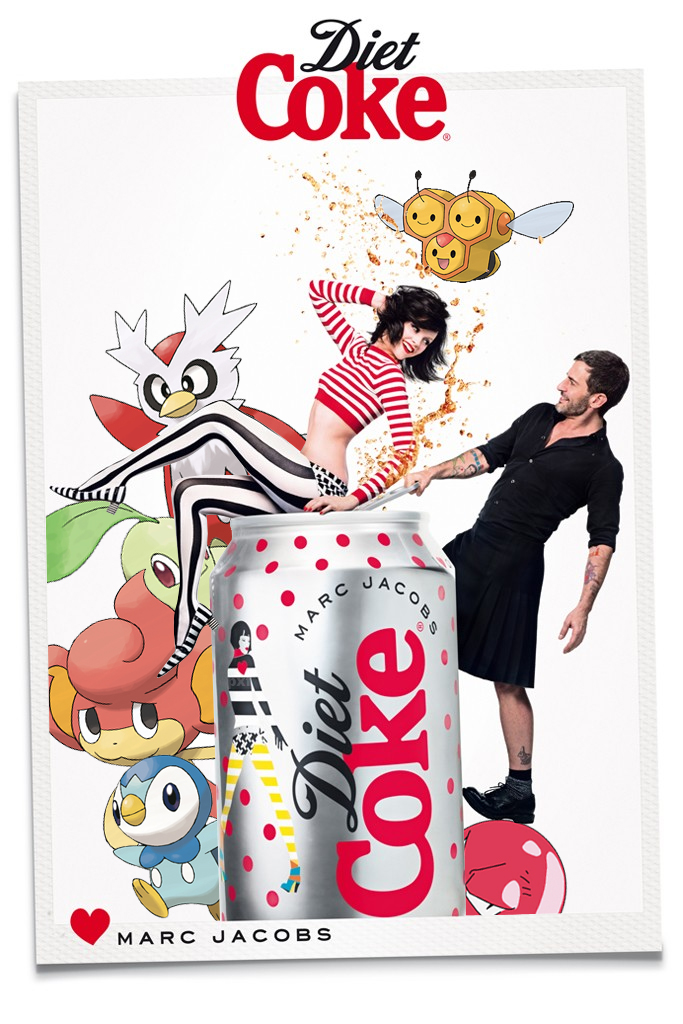 Em comemoração a seus 30 anos na Europa, a Coca Cola Diet convidou o designer Marc Jacobs para ser diretor criativo da marca. Desde o começo do ano começaram a ser divulgados os primeiros resultados dessa parceria.