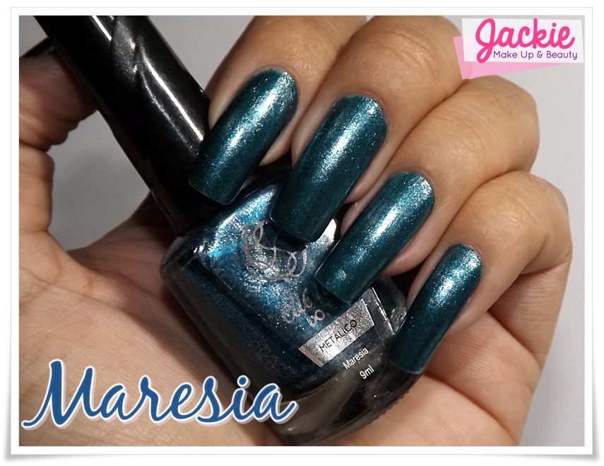 Já faz alguns meses que estive por lá e garimpei uns vidrinhos, entre eles um da nova linha da Eliana. Agora a apresentadora assinada para a Dote que lançou uma boa gama de cores na minha última comprinha eu me joguei no azul metálico que para minha surpresa ao passar, o azul se transformou em uma cor linda meio esverdeada.