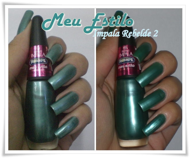 Meu estilo não é muito meu estilo + é bacaninha rs é um verde metalizado bem claro que faz parte da Coleção Rebelde 2 eu prefiro tons mais escuros mas esse apesar de claro não me desagradou 😛