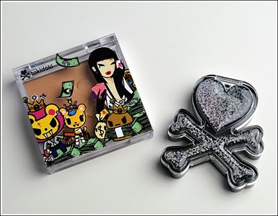 Os novos produthynhos são o bronzer e a sombra black com brilhinhos da TokiDoki desenvolvidos para a rede, olhem que tchutchu as embalagens, olha essa em formato de caveirinha :