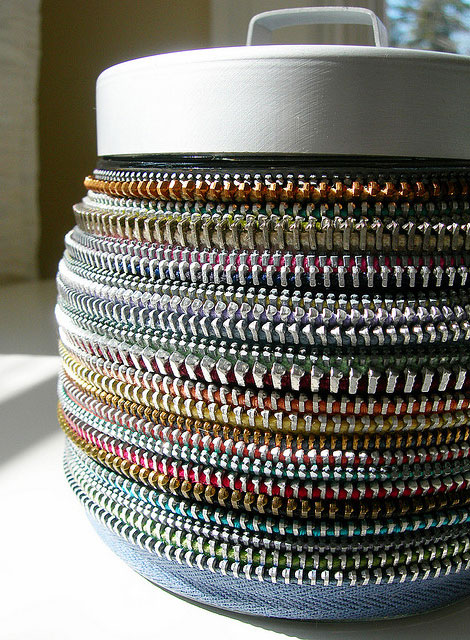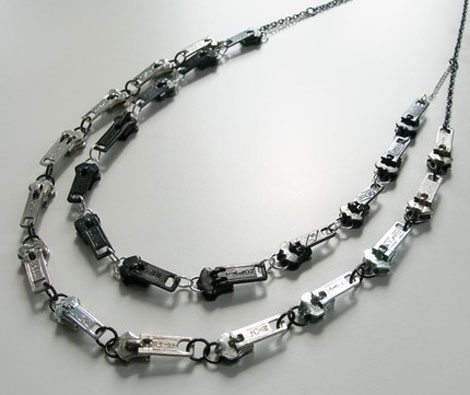 A artística Amalia Versaci usa aplicações feitas de zípers para decorar peças, criar brincos, colares, pulseiras e muitas outras invenções.