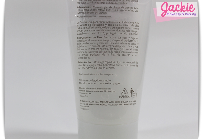 - Reativador de cachos: Rico em óleo de macadâmia e complexo de ativos de alta definição, reativa seus cachos a qualquer hora do dia. Modela, umidifica e perfuma os fios, enquanto auxilia na redução do frizz. Reativa os cachos a qualquer hora do dia. Elimina o frizz, modela e perfuma, podendo ser aplicado nos cabelos secos ou úmidos.