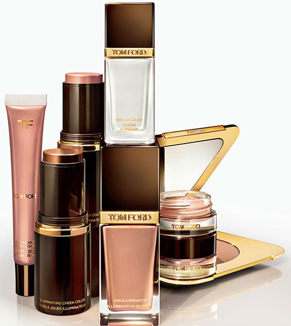 Para os olhos duas sombras cremosas, para a pele blushs iluminadores cremosos em bastão e bronzers compactos em pó, iluminador líquido, para os lábios um gloss rosado e para fechar um esmalte madrepérola