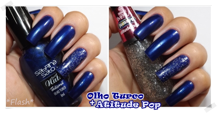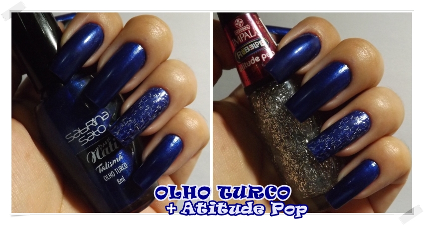 O escolhido para essa semana é um lindo azulão ‘Olho Turco’ da Coleção Talismã Passe Nati Sabrina Sato faz um tempão que recebi esse esmalte fiz o review e o coitado ficou na fila na maleta e para dar um brilho na coisa toda aproveitei para testar também o Atitude Pop que faz parte da Coleção Rebelde 2 da Impala filetinhos de glitter na maior pegada adolescente #acheifofo