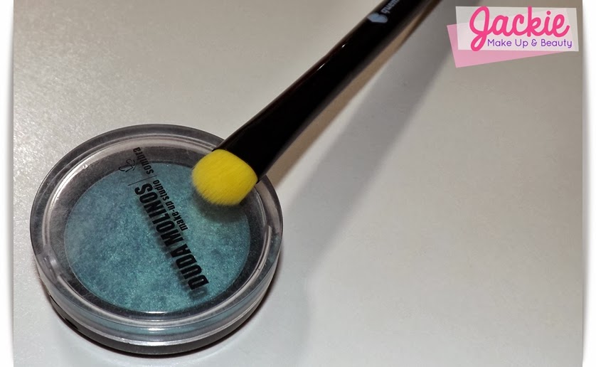O pincel da QDB tem cerdas sintéticas mas bem macias, esse pincel é bacana para aplicar sombra compacta ou solta (pigmento) não dá muito certo para sombra 3D