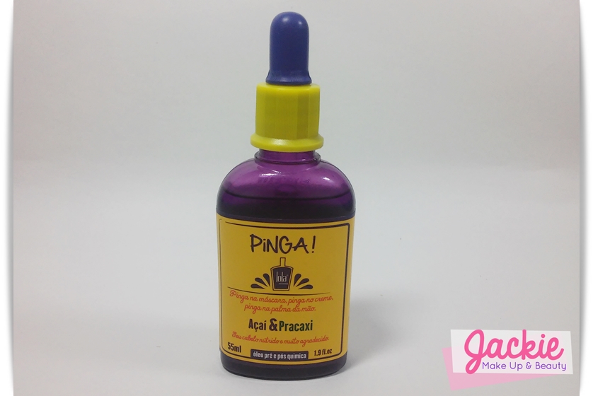 “O Pinga Pré e Pós Química Açaí & Pracaxi da Lola Cosmetics é um tratamento profundamente nutritivo que pode ser usado como protetor da cor e dos danos ambientais ou para reparar pontas duplas. Sua textura glamourosa é absorvida instantaneamente. Toque seco e perfume maravilhoso.“