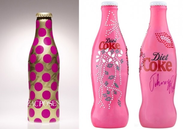 As versões light e diet da Coca-Cola quase sempre estão fazendo parcerias com nomes famosos do mundo da moda, resultando em diversas garrafas diferenciadas.