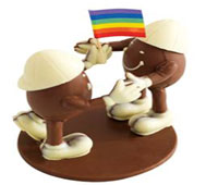 Sugestão: Ovos divertidos em formatos românticos além da linha exclusiva de chocolates para o público gay. Vale a pena conferir no site os modelos Sadomatrix e Beijoca.