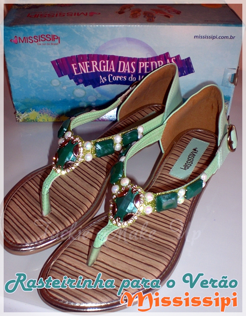 Faz um tempão que eu recebi da assessoria da Mississipi um par de rasteirinhas da coleção de verão: Energia das Pedras, As cores do mar.