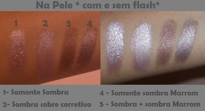 Esta sombra, no pote, é um marrom chocolate + quando aplicada, ela quase não acrescenta cor, justamente por ser do tipo iluminadora. Como ela é um granuladinho eu aconselho usar este tipo de sombra com um pincel úmido, pra evitar que o pó caia no rosto e estrague o make, ou você 1º faz o olho e depois prepara a pele. Eu gosto desse tipo de sombra já tive algumas da vult e elas são ótimas para combinar com outra cor.