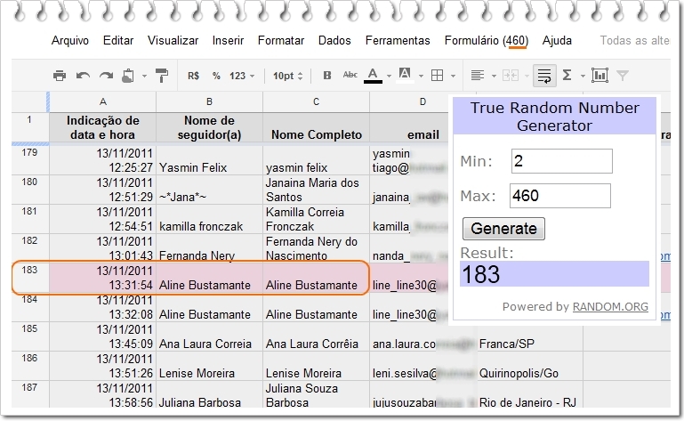 Foram 460 inscrições válidas as regrinhas simples e poucas pessoas foram desclassificadas. A regra principal era ser seguidora dos 2 blogs