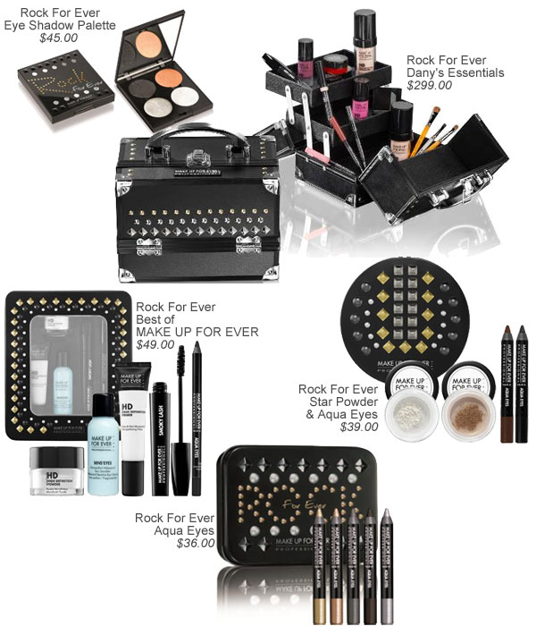 Cada conjunto em edição limitada é envasado em um estojo de metal reutilizável adornado com argolas douradas e prateadas, e contém uma série de best-selling de produtos e cores comemorativas