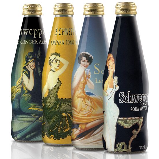 Não é maquiagem nem cosmético + gente olha que coisa mais Rhyca as garrafinhas criadas pela agência de design brasileira DiDonato. A Schweppes Limited Edition traz de volta o ‘vintage’ com mulheres da década de 1920-1950 com inspiração da arte.