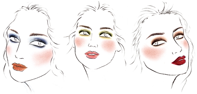 Face charts dos looks elaborados para ilustrar a coleção, todos assinados pelo diretor artístico da marca, Kakuyasu Uchiide