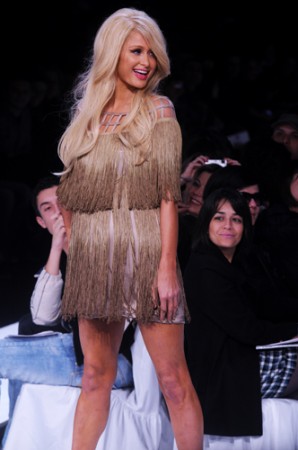A Triton apresentou ontem sua coleção VERÃO 2011 e a Paris Hilton (que não sai + do Brasil rs) foi a estrela do desfile, ela apresentou dois looks e foi ovacionada pela plateia, que a filmava e fotografava com entusiasmo.  O primeiro visual era composto por vestido e bolero brancos, de patchwork. O vestido desfilado em sua segunda entrada mostrava um dos pontos altos da apresentação: as franjas.