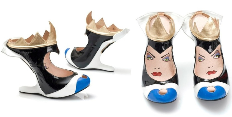 Malévola, da Bela Adormecida, a Rainha Má, da Branca de Neve, e a Úrsula, de A Pequena Sereia, tiveram seus rostos e roupas redesenhados para virarem sapatos.